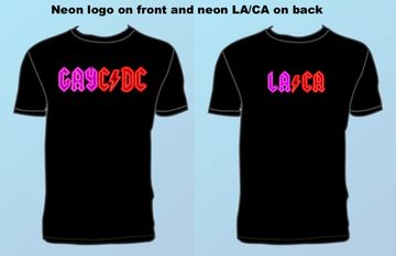 Our logo in pink and red neon with LA/CA on the back